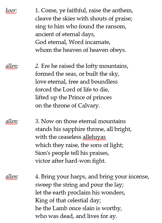 New English Hymnal 351 Come ye faithful, raise the anthem: 1 koor, 2-4 allen