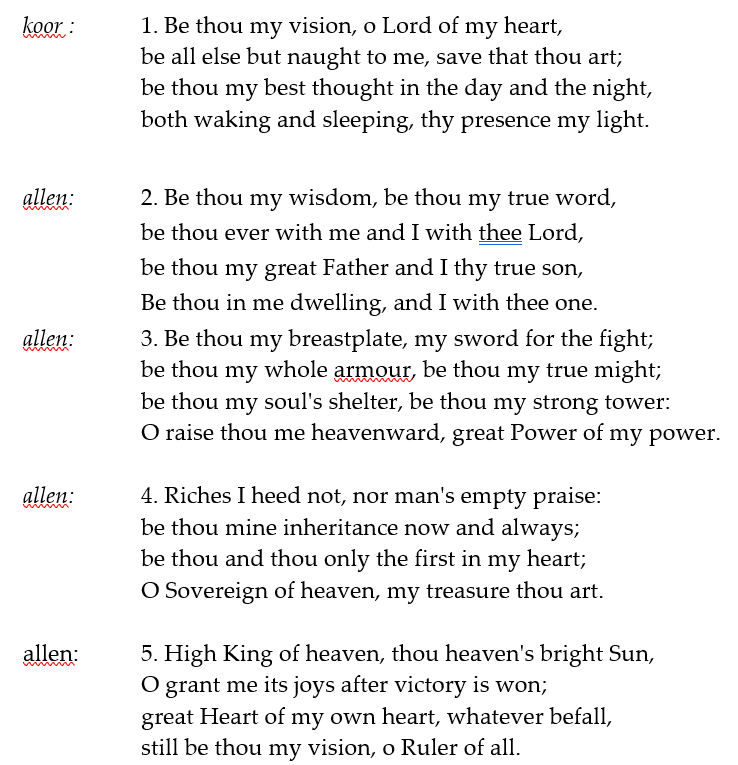 New English Hymnal 339 Be thou my vision: 1 koor, 2-5 allen